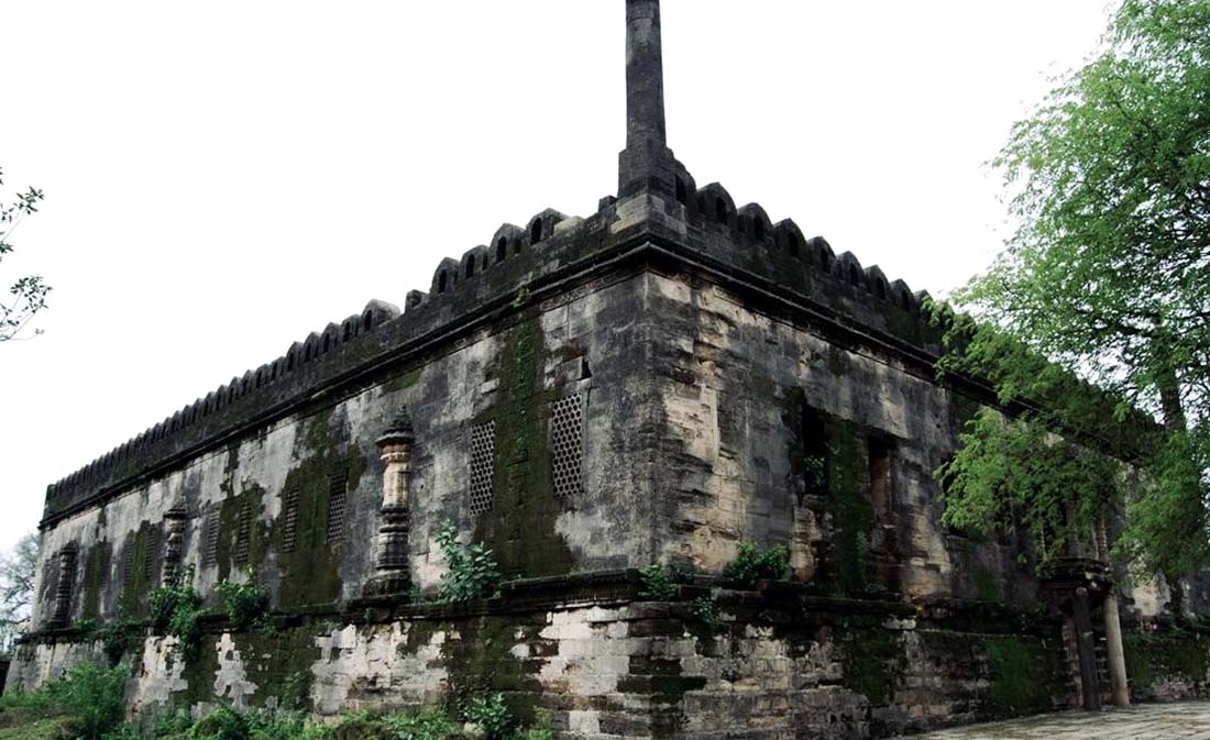 Inside the fort complex reside two colossal cannons, Neelam and Manek. These twin medieval cannons were used against the Portuguese invaders in Diu in 1538 CE by the Turkish Naval Force under Emperor Suleman invited by Sultan Bahadur Shah. The Turks were defeated and left the cannons behind. These artefacts were later brought to Junagadh and installed in the fort complex. Close to Neelam and Manek, there is a 15th century mosque, the Jama Masjid. It has a rare roofed courtyard with three octagonal openings.