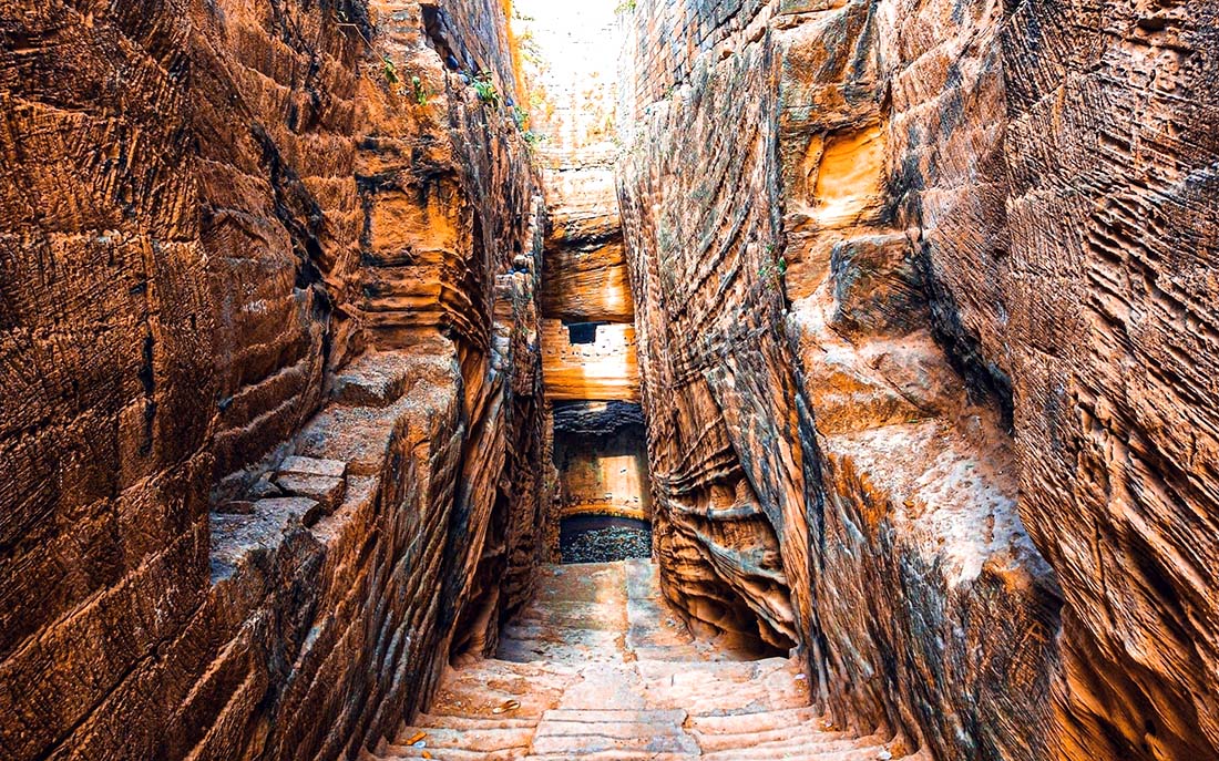 The Uparkot fort is home to some breathtaking stepwells. The fort complex has two rock-cut stepwells called Adi-Kadi Vav and Navghan Kuvo. The unusual zig-zag staircases in these wells are an interesting feature. Despite the lack of ornamental designs, the rock stratum along the side walls themselves give these wells a breathtaking appearance. A local legend is associated with the Adi-Kadi Vav. This stepwell is believed to have been named after two slave girls. These girls were said to have been sacrificed by the King who commissioned the stepwell to appease the water gods. Navghan Kuvo, on the other hand, is a striking example of early rock cut architecture. This stepwell is said to have sustained the Uparkot fort through its many sieges. It is, in fact, believed to be one of the oldest stepwells of the country.