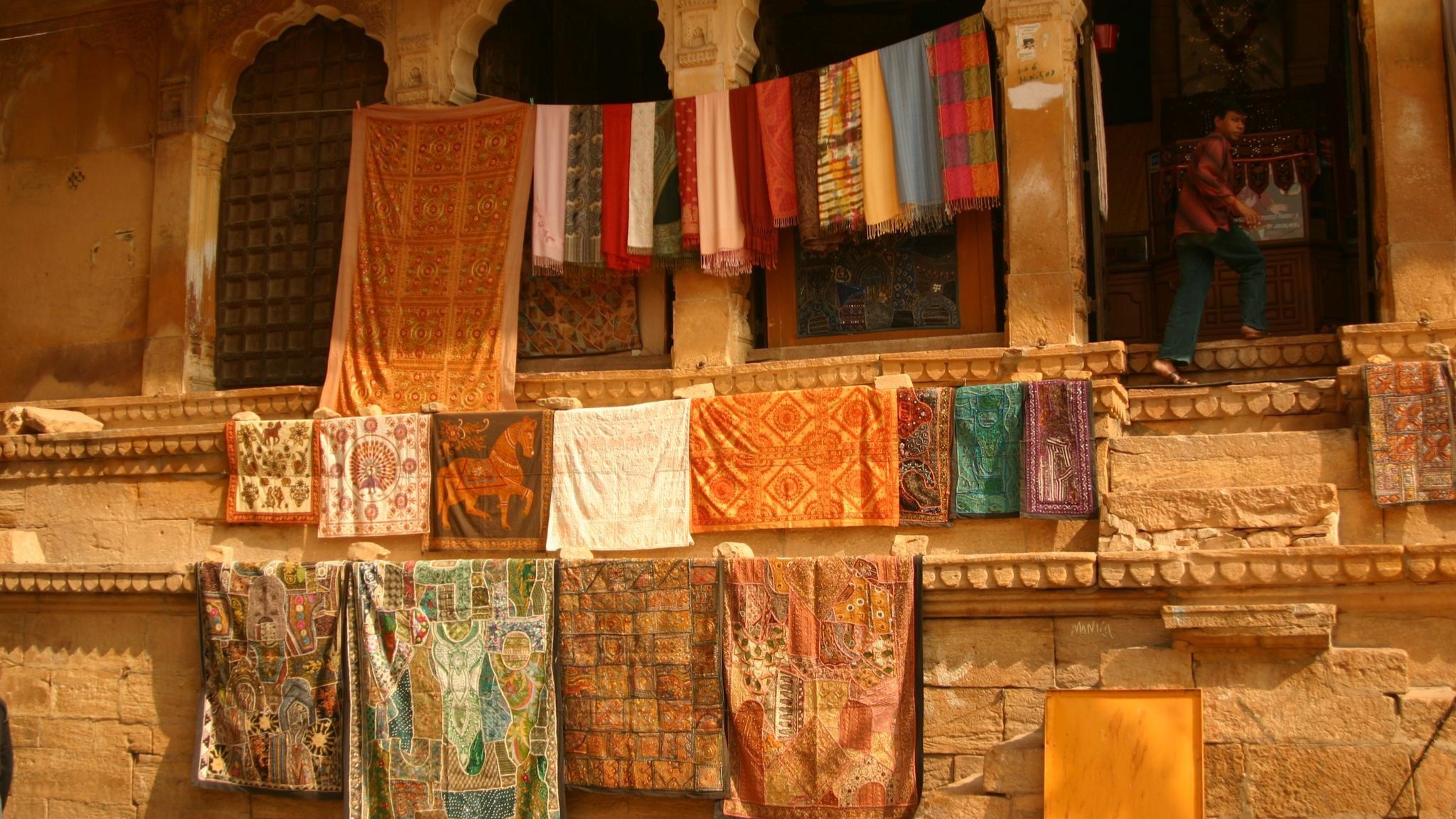 कला और शिल्प की दुकानों का एक बहुरूपदर्शक जैसलमेर के जीते-जागते किले को सुशोभित करता है। छवि स्रोत- फ़्लिकर