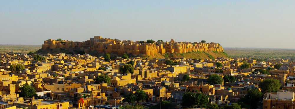 राजस्थान के सुनहरे रंग के जैसलमेर किले का एक दृश्य। छवि स्रोत- फ़्लिकर