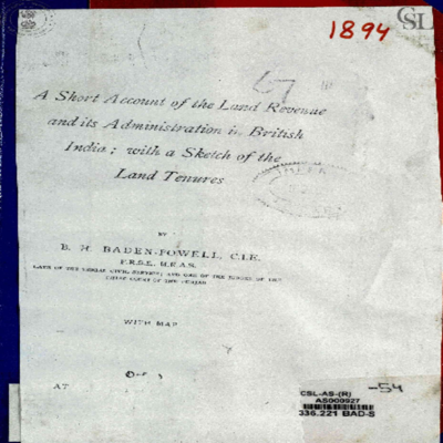अ शॉर्ट अकाउंट ऑफ़ द लैंड रेवेन्यू एंड इट्स एडमिनिस्ट्रेशन इन ब्रिटिश इंडिया विद अ स्कैच ऑफ़ द लैंड टैन्योर्स