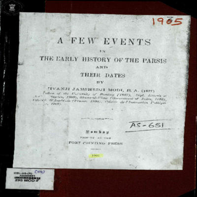 अ फ़्यू इवेंट्स इन द हिस्ट्री ऑफ़ द पारसीज़ एंड देयर डेट्स