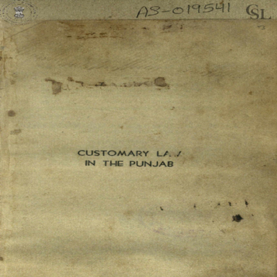 कस्टमरी लॉ इन द पंजाब बीइंग अ कोड ऑफ़ अनरिटिन लॉ फ़ॉर द पंजाब बेस्ड ऑन कस्टम्स