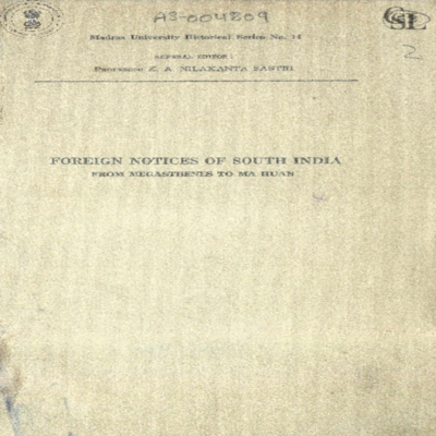 फ़ॉरेन नोटिसेज़ ऑफ़ साउथ इंडिया फ़्रॉम मेगास्थनीज़ टू मा हुआन