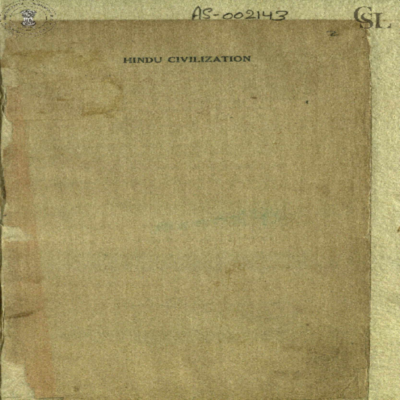 हिंदू सिविलाइज़ेशन: फ़्रॉम द अर्लिएस्ट टाइम्स अप टू द इस्टेब्लिशमेंट ऑफ़ द मौर्य एंपायर