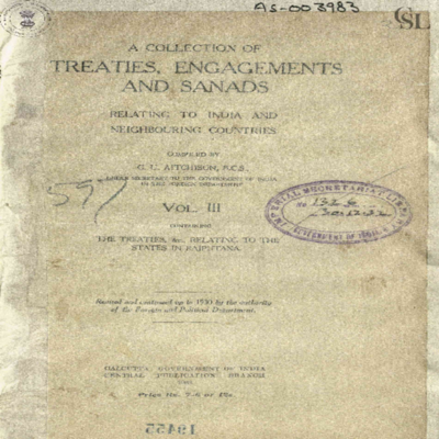 अ कलेक्शन ऑफ़ ट्रीटीज़ इंगेजमेंट्स एंड सनद्स रिलेटिंग टू इंडिया एंड नेबरिंग कंट्रीज़ वॉल्यूम-3