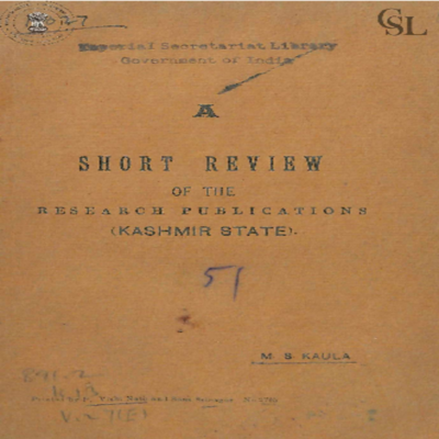 अ शॉर्ट रिव्यु ऑफ़ द रिसर्च पब्लिकेशंस (कश्मीर स्टेट)