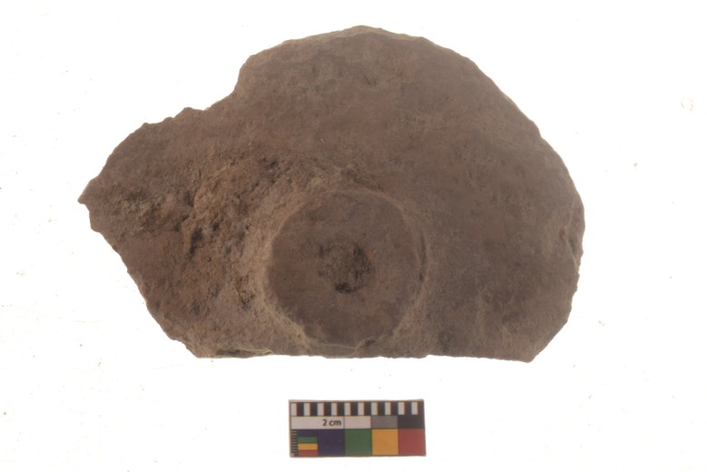 | dc.description | A partially broken specimen of terracotta wheel with broken edges and scratch marks on one side near perforation. |