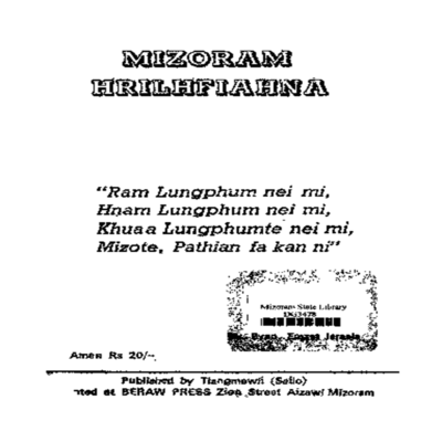Publisher:Maranatha Printing Press Publications, Aizawl.