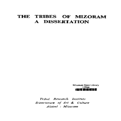 Publisher:Tribal Research Institute, Govt of Mizoram, Aizawl