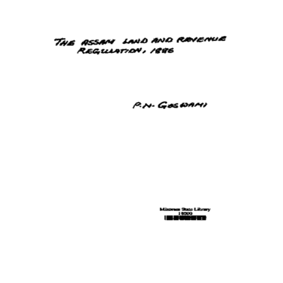 The Assam Land and Revenue Regulation 1886: Regulation I of 1886 as Amended