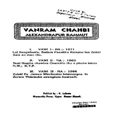 Publisher:Tribal Research Institute, Govt of Mizoram, Aizawl